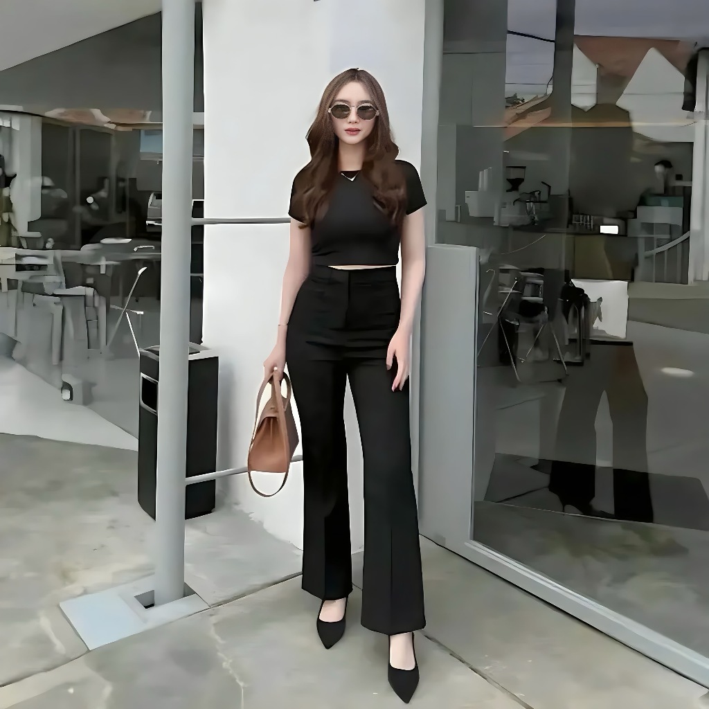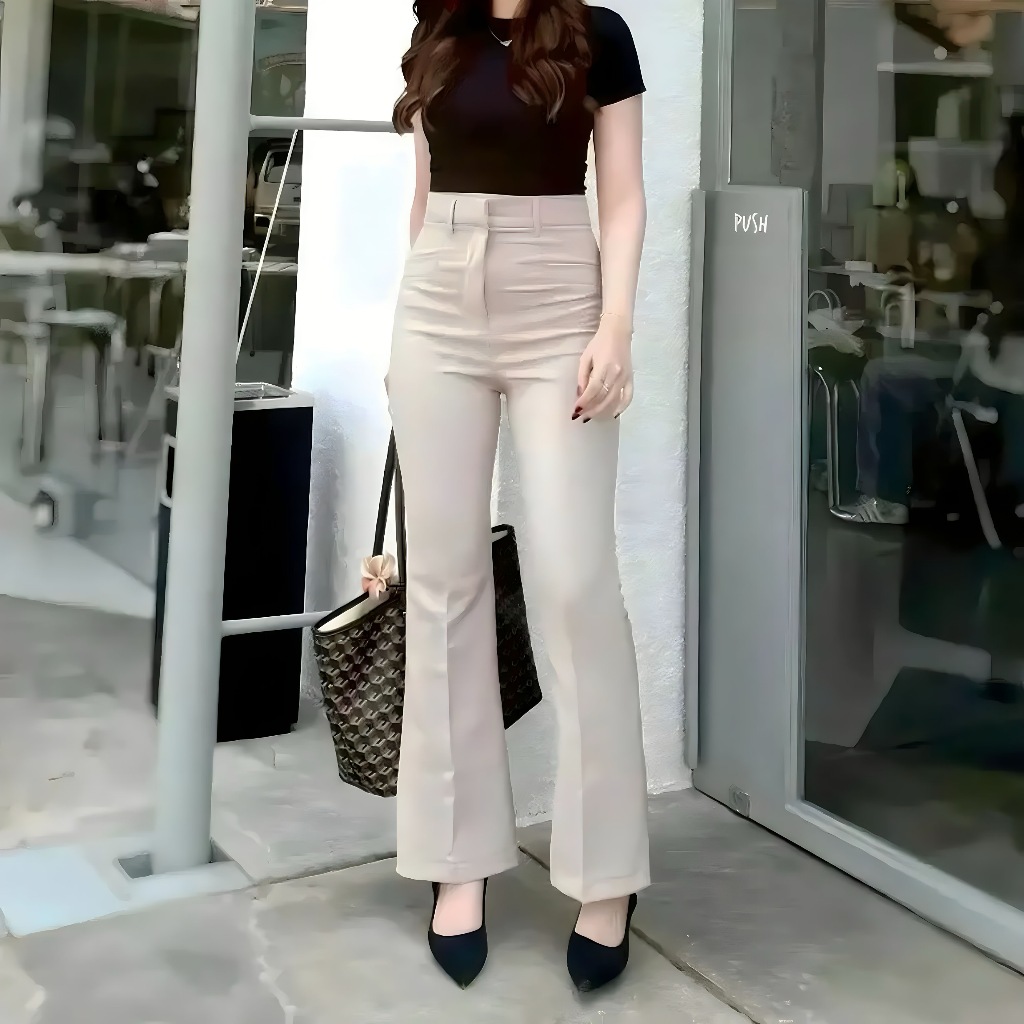 Celana Flare kylie Cutbray Pants Wanita Highwaist Terbaru kekinian Untuk Kantor Formal Casual