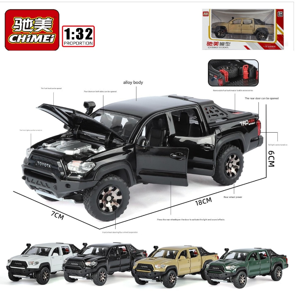(R363) Diecast Alloy TACOMA TAKUMA trd Double Cabin PickUp Scala 1:32 With Sound Light pullback