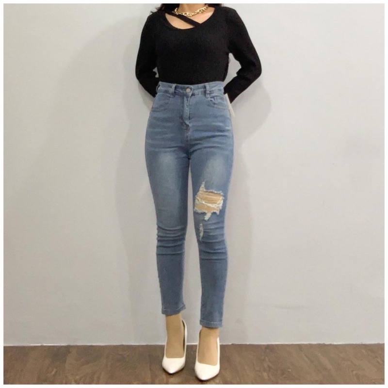 Jeans | Celana panjang Highwaist wanita Jeans premium Jeans wanita polos ripped jeans High waist jeans wanita S
