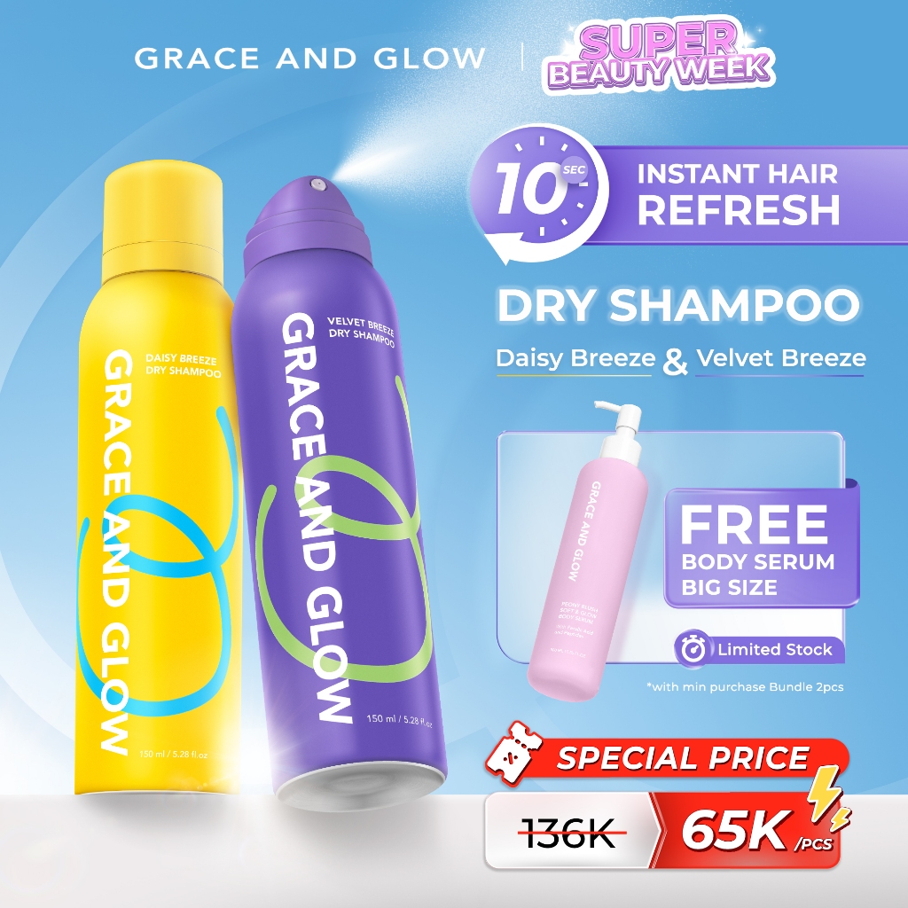 [FREE BODY SERUM] Grace and Glow Dry Shampoo - Instant Hair Refresh Daisy & Velvet Breeze | Shampo Tanpa Bilas