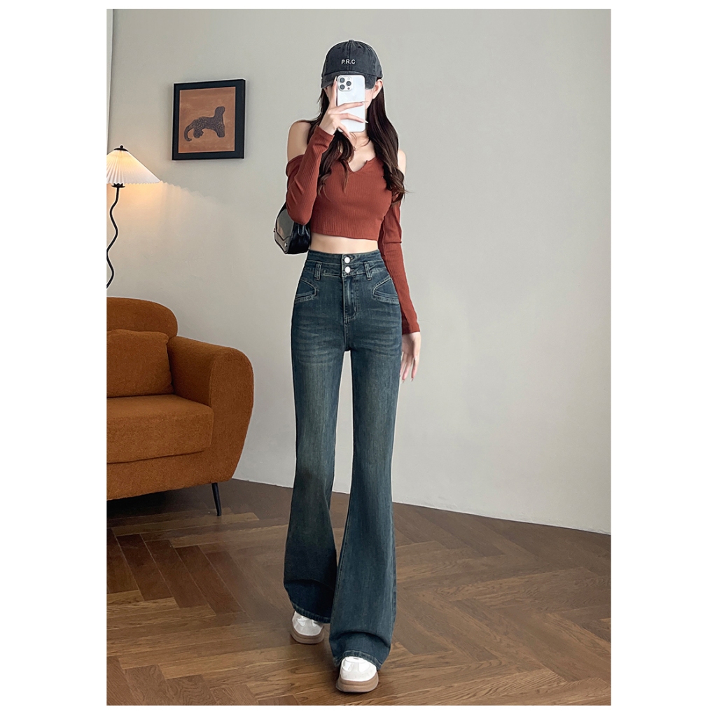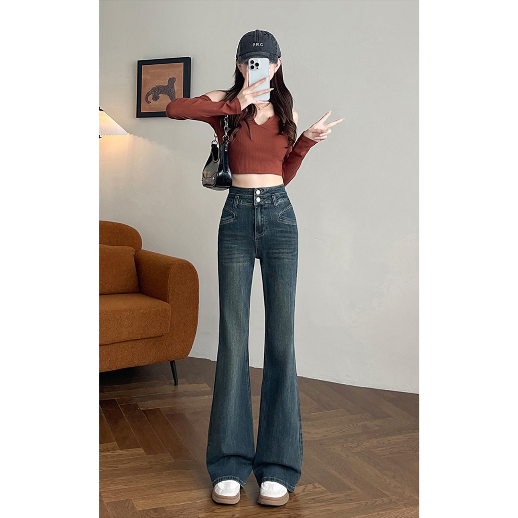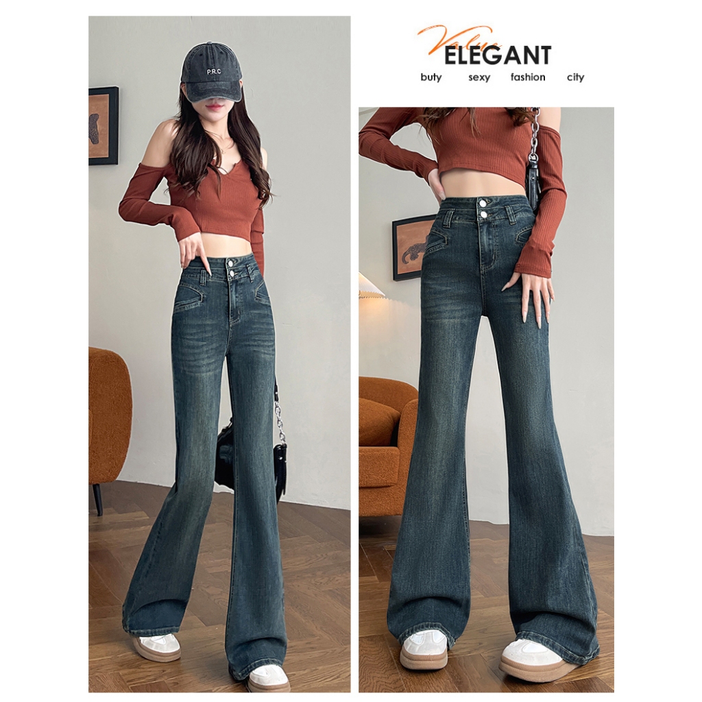 2toyoung High waist flared jeans for women spring autumn summer 2025 new slim fit wide leg horseshoe flared floor-length pants celana jeans