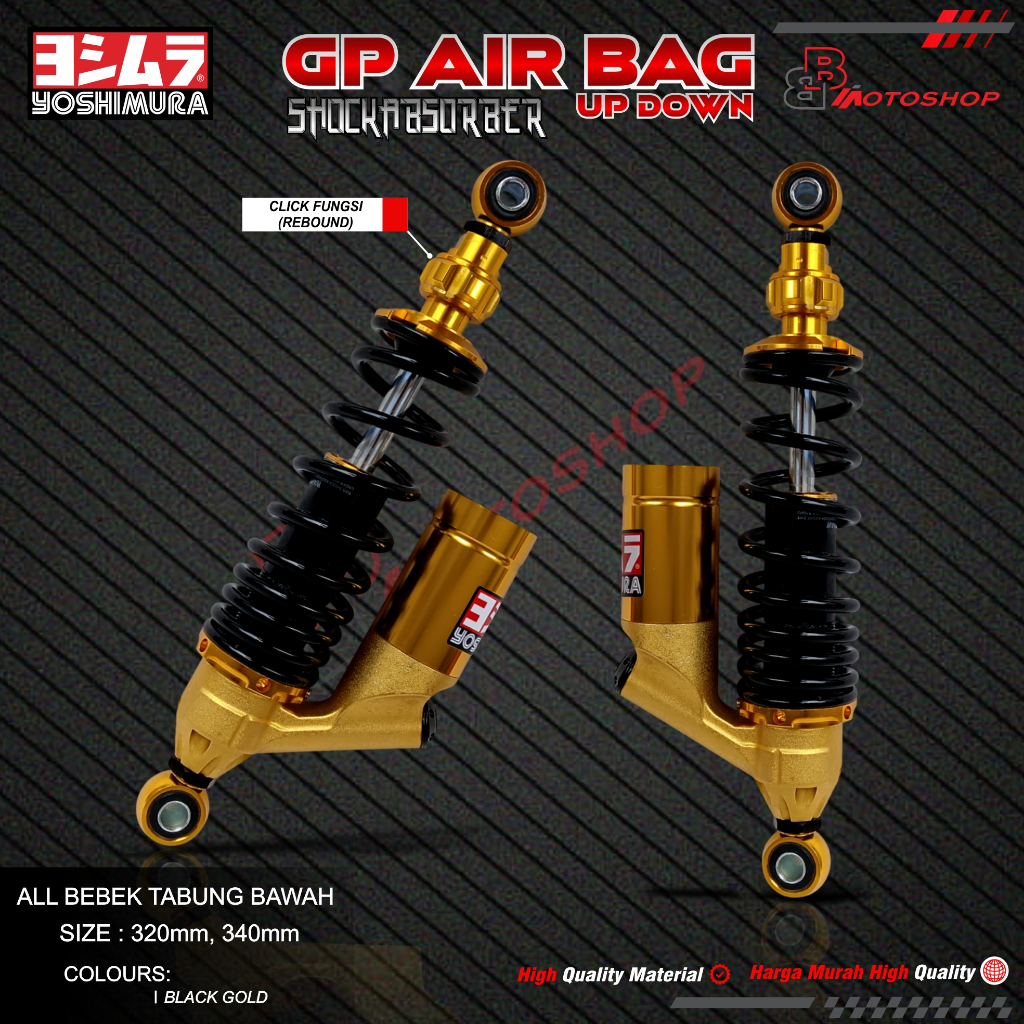 Shock Breaker Tabung Bawah Click Fungsi GP Air Bag Up Down Uk 320mm 340mm semua motor BEBEK