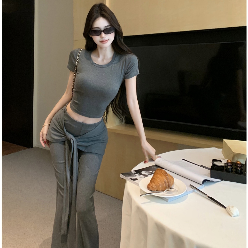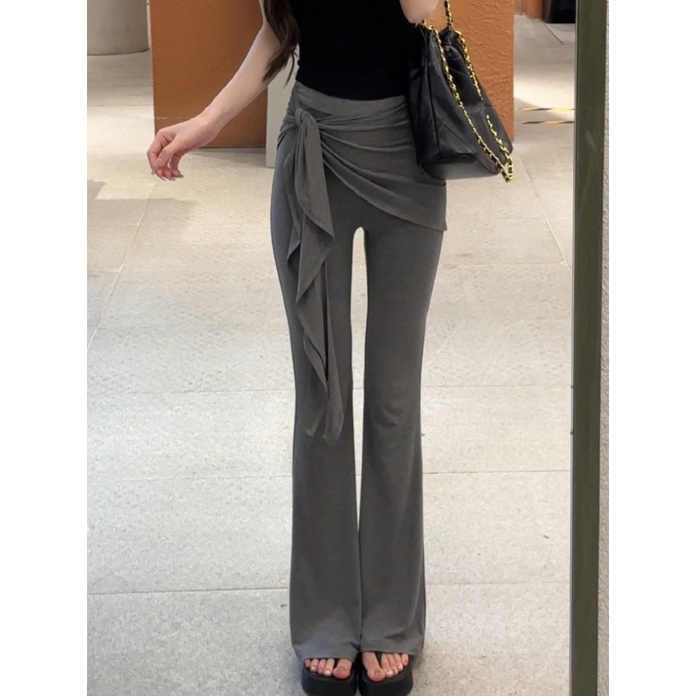 Soso Amerika palsu dua bagian tali dengan microhorn celana wanita musim panas 2025 baru pinggang tinggi tampilan kurus kaki panjang kasual