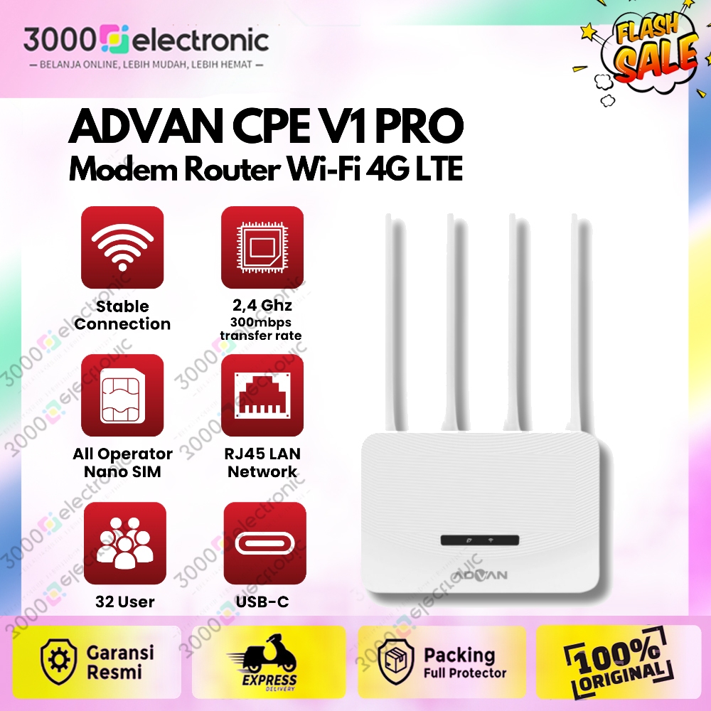 AdvAN CPE V1 Pro Modem + Wifi + Router + 4G LTE, MIFI Unlock Jaringan All Operator - Garansi 1 Tahun