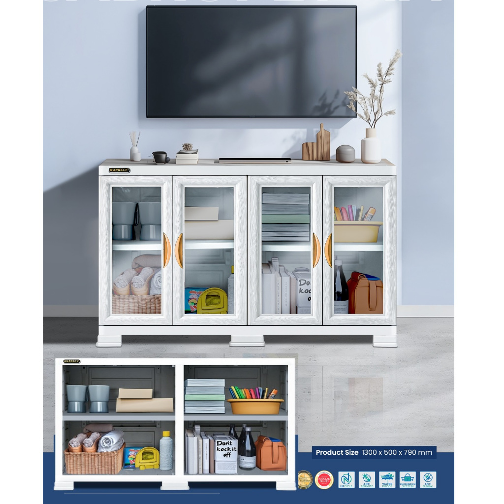 NAPOLLY Meja TV Serbaguna Rak TV Plastik Cabsulfet 353 454 Rak Penyimpanan 4 Pintu dan 3 Pintu