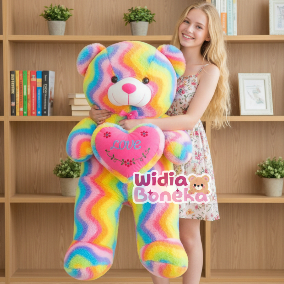 BONEKA TEDY BEAR XL RAINBOW TOPI PITA