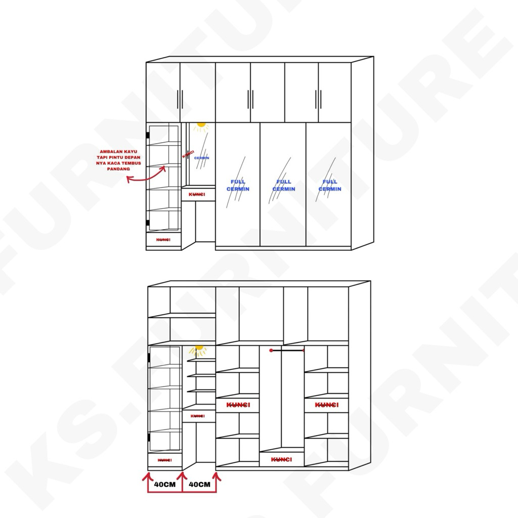 LEMARI SLIDING SERBAGUNA + MEJA RIAS + LEMARI TAS