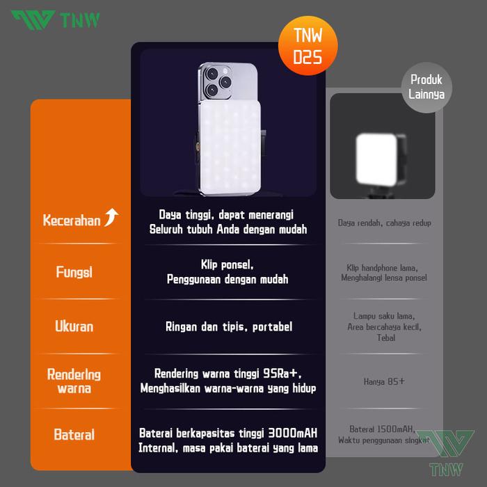 Tnw D25 Selfie Light Portable Clip Mini Led Light Led Video Light Lampu Fotografi Lampu Selfie Portable Lampu Camera H