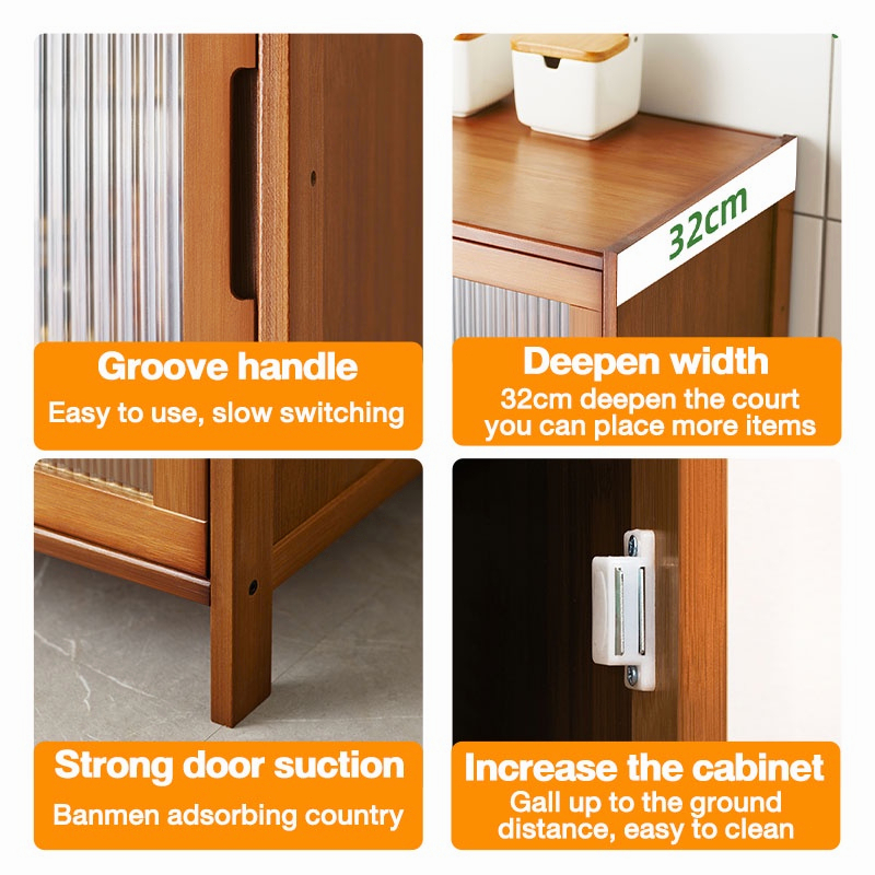 Lemari Penyimpanan Serbaguna Besar Rak Penyimpanan Bambu Berkapasitas Besar Rak Oven Microwave