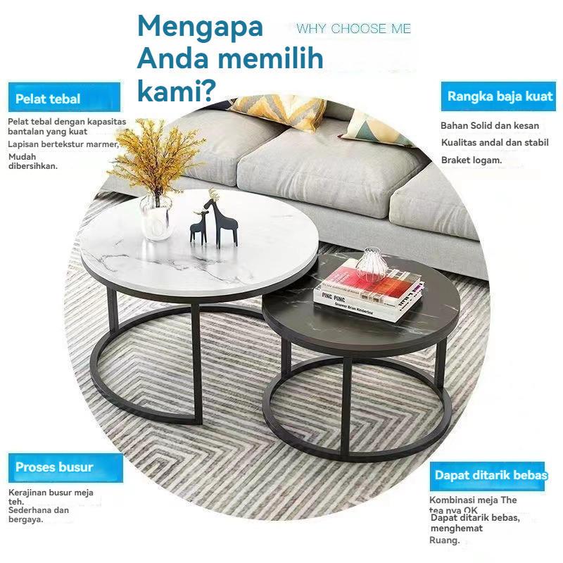 Furnibest Meja Kopi Meja Tamu 2-In-1 Plus Meja Minimalis Meja Ruang Tamu Dapat Dikombinasi Bebas