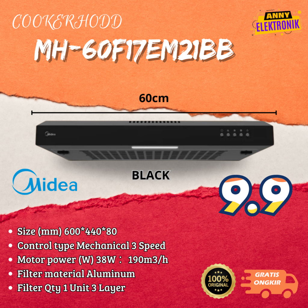 Midea Cooker Hood/Penghisap Asap MH-60F17EM21BB / 60 CM ORIGINAL (BLACK)