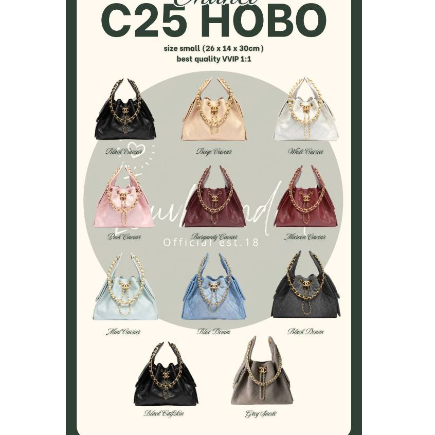 [TAS VIRAL JENNIE] C25 Hobo Small Caviar Leather/Suede/Denim