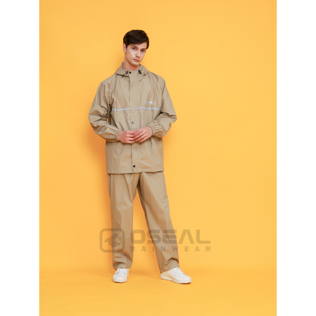 Jas Hujan OSEAL Full Seal Raincoat Mantel Pria Wanita Dewasa Shine Series Mocca
