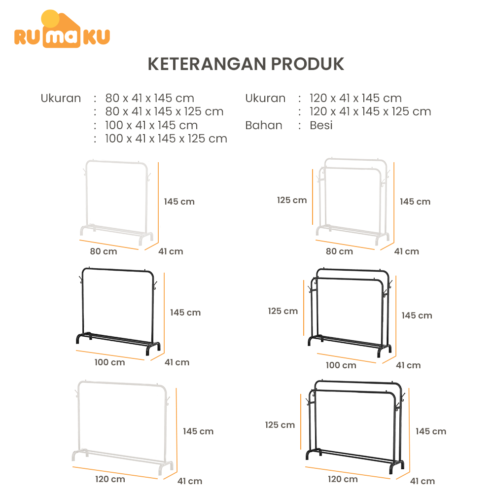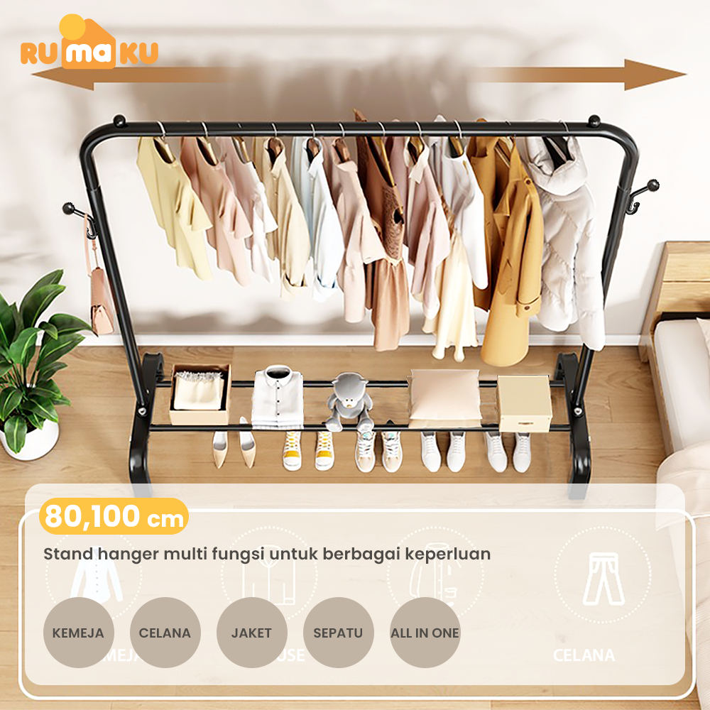 Rumaku Gawang Baju Lebar 120CM Tinggi 145CM Stand Hanger Gantungan Baju 2 Palang Serbaguna