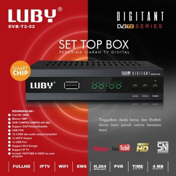 Luby Set Top Box DVB T2 02 Receiver Tv STB Digital Full HD SNI Original