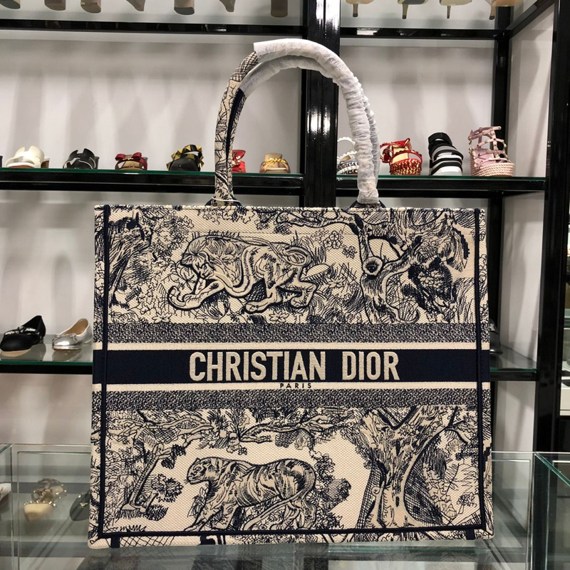 tas C D book tote bag tiger navy canvas 41 cm super mirror quality