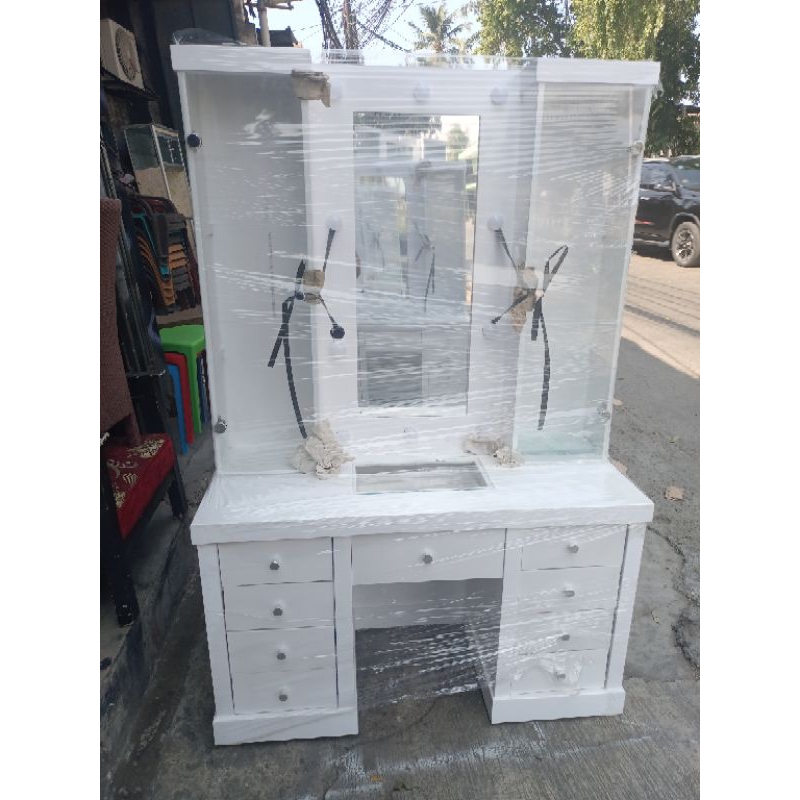 meja rias. tolet. lemari kaca cermin. lampu laci cermin pintu kaca kayu
