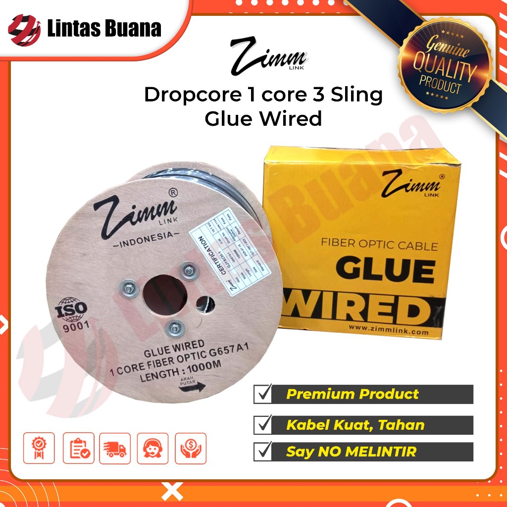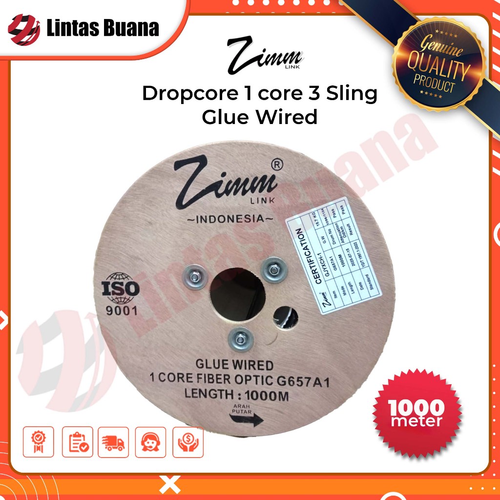 Kabel Dropcore 1 Core 1000 Meter Glue Wired Kabel Fiber Optik 1000m FTTH Zimmlink With GLUE Wired steel wire 1.0mm