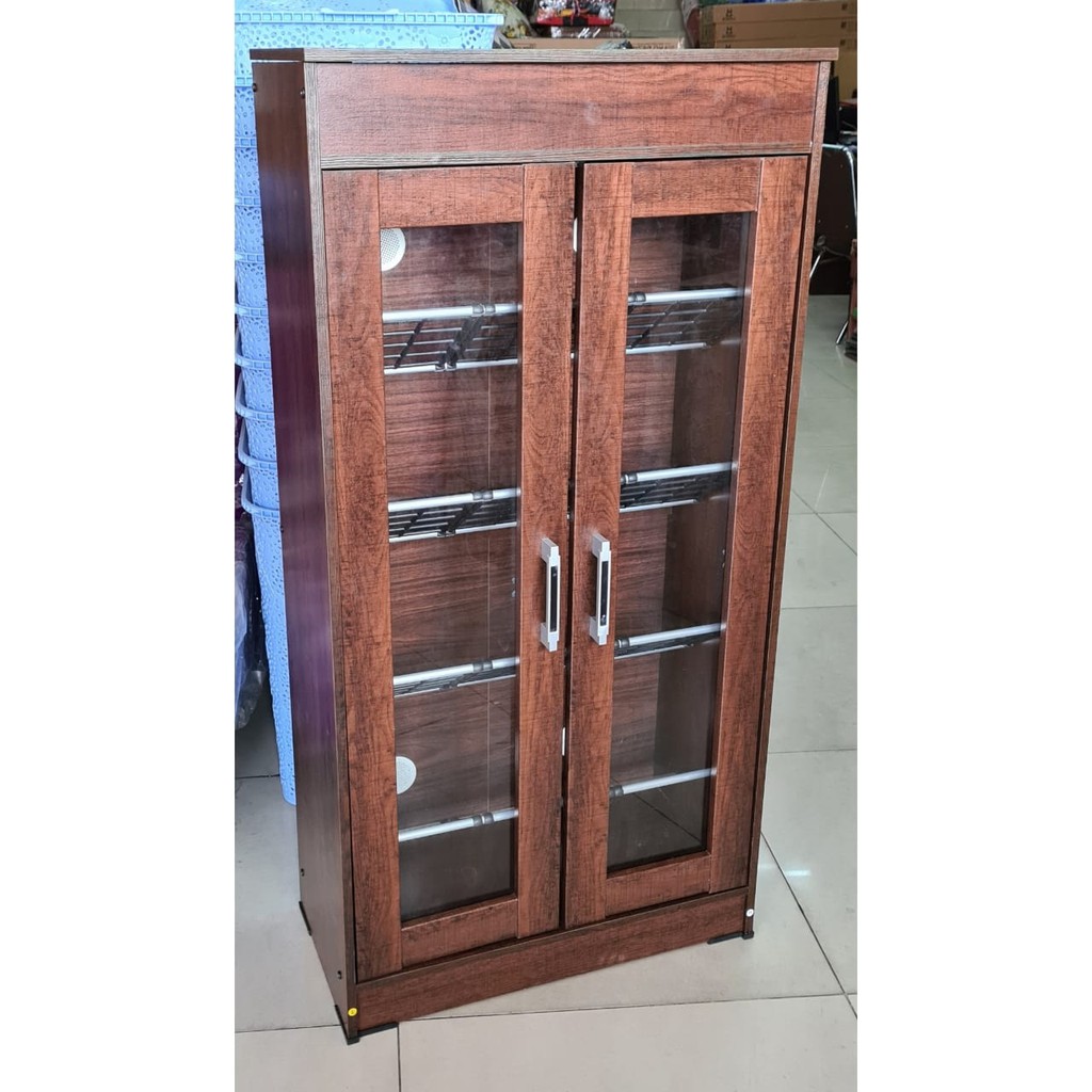 LEMARI Sepatu KAYU KACA 15 Pasang DENGAN Rak Serbaguna