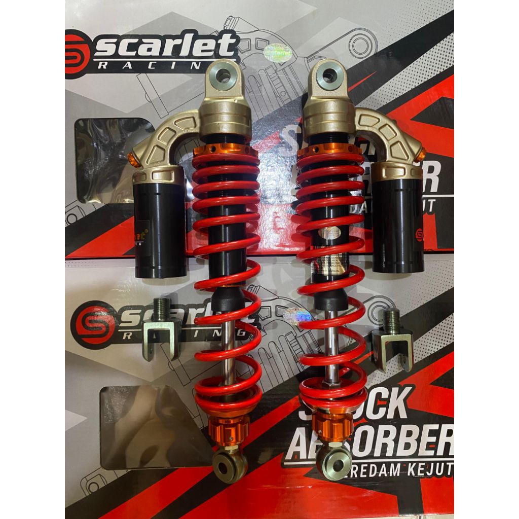 SHOCK TABUNG BELAKANG SCARLET 3676 340MM MERAH/GREY BEBEK MATIC SUPRA X 125