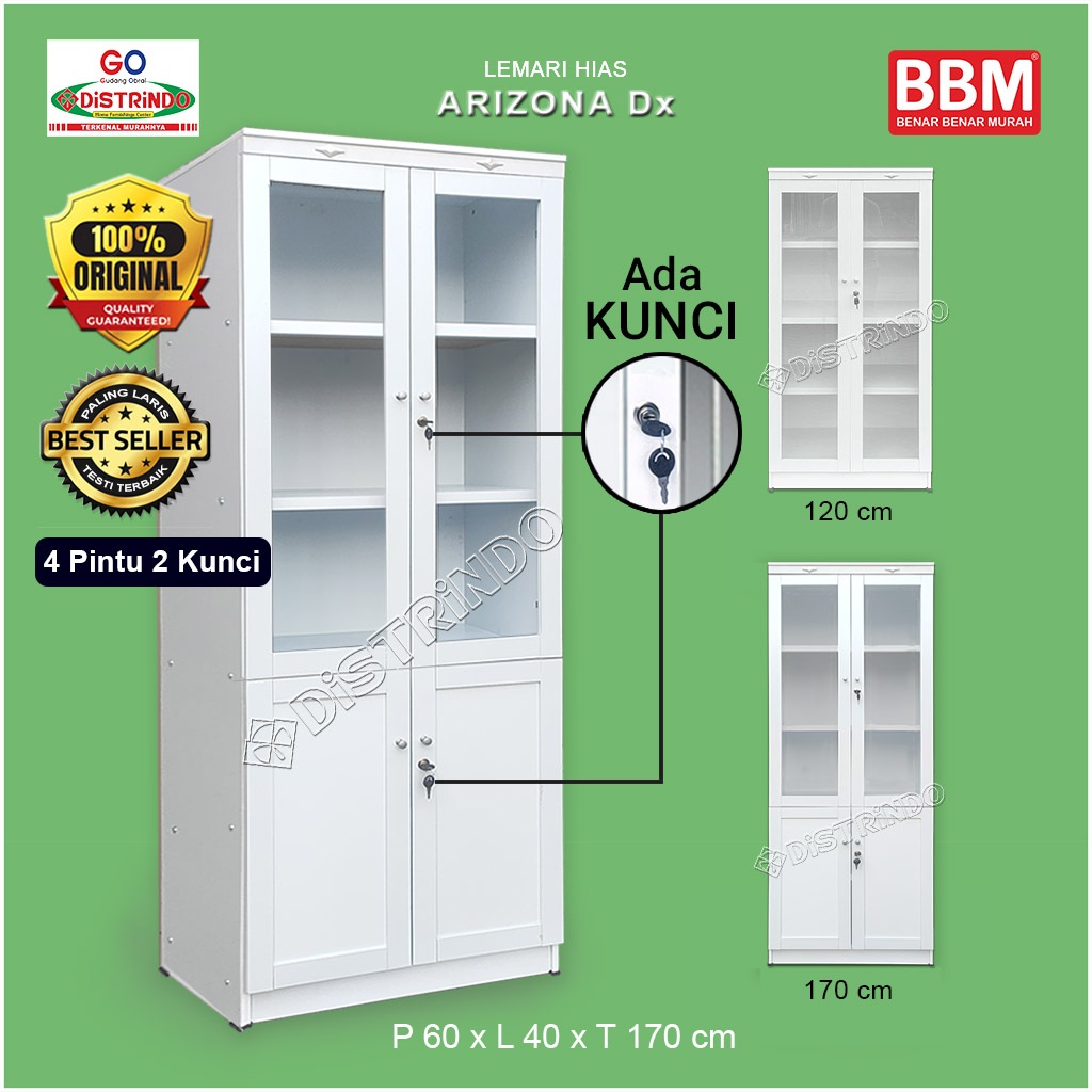 Distrindo - Bufet Lemari Hias Etalase Pintu Kaca + 2 Kunci Serbaguna Untuk Tas, Kosmetik, Konfeksi