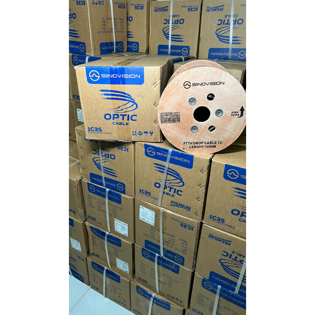 Kabel FIBER OPTIK DROPCORE Sinovision 1/2/4 Core 3 Seling 1000M Fiber Optik Asli Kualitas Bagus