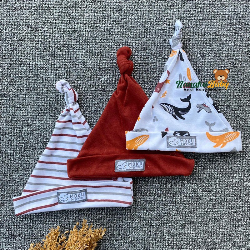 Nanaku Baby - Paket Isi 3 Pcs Kupluk Newborn Series Maroon – Topi Bayi Baru Lahir Lembut SNI 0–3 Bulan