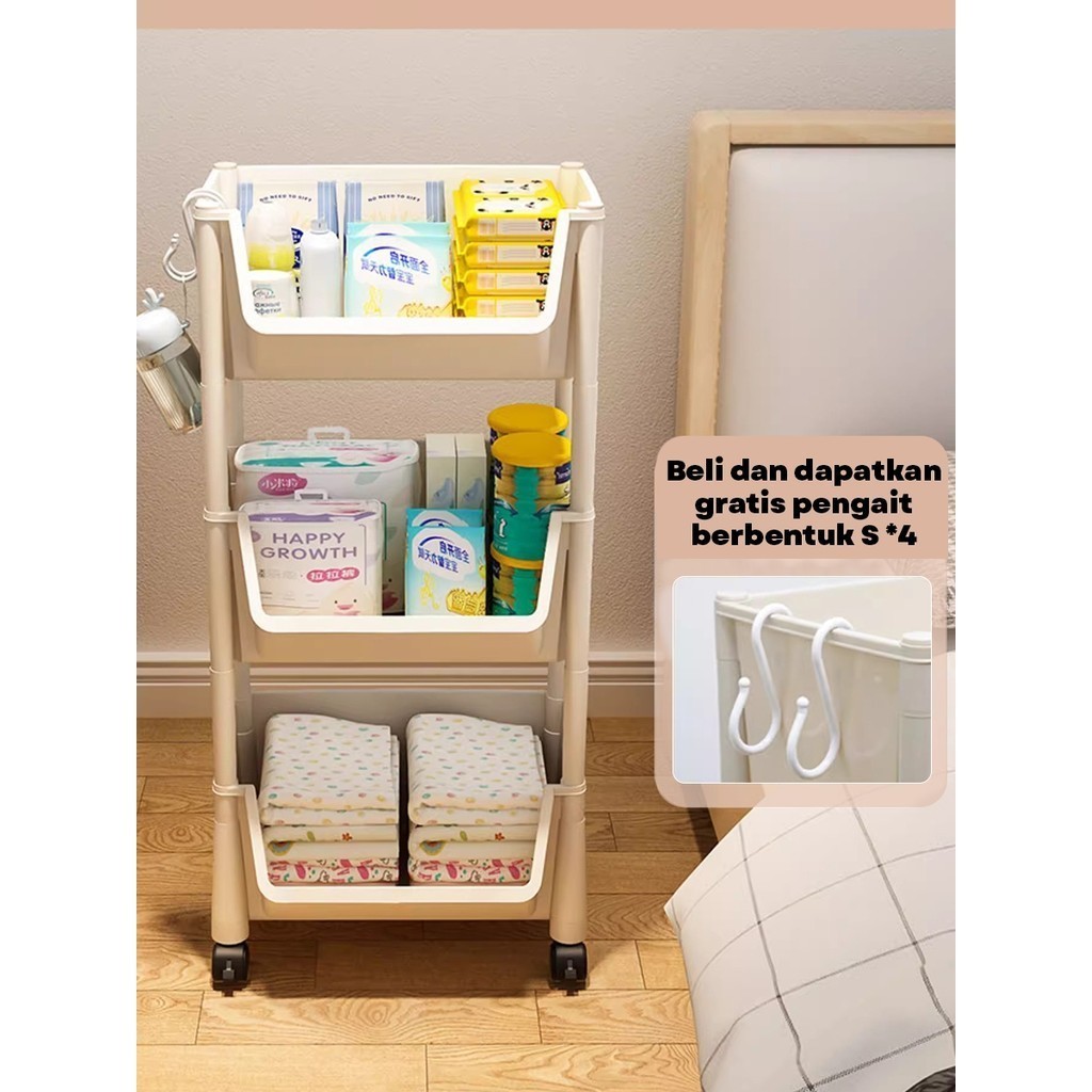 Paus Biru - Rak Serbaguna Buku Rak Susun Tempat Portable Roda Rak Toy Storage Rak Susun H83