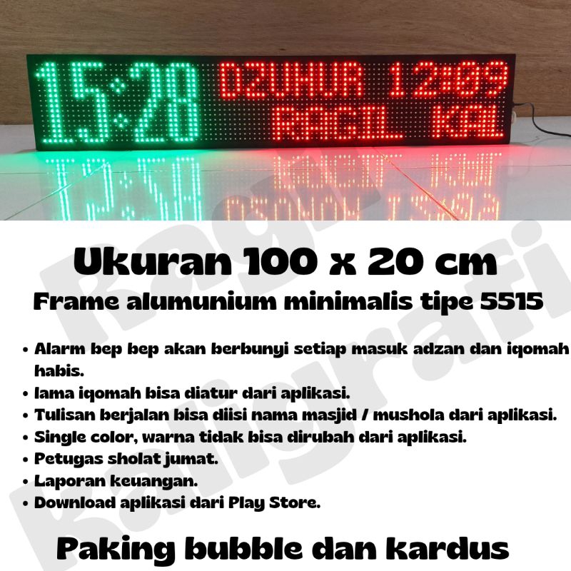 Jam sholat digital Jam digital masjid JWS P10 runing teks uk 100 x 20 cm