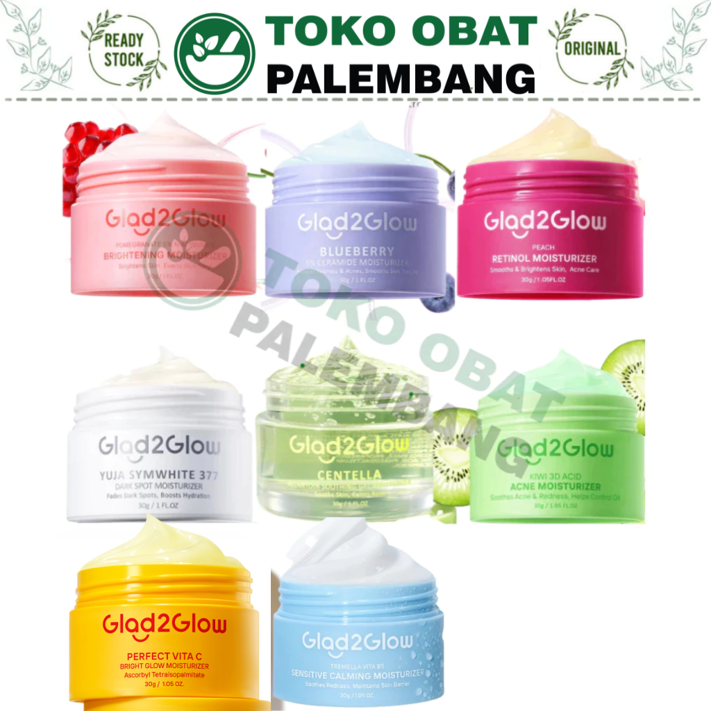 GLAD2GLOW MOISTURIZER CENTELLA POMEGRANATE YUJA SYMWHITE 377 BLUEBERRY KIWI 3D ACID ACNE PEACH RETINOL