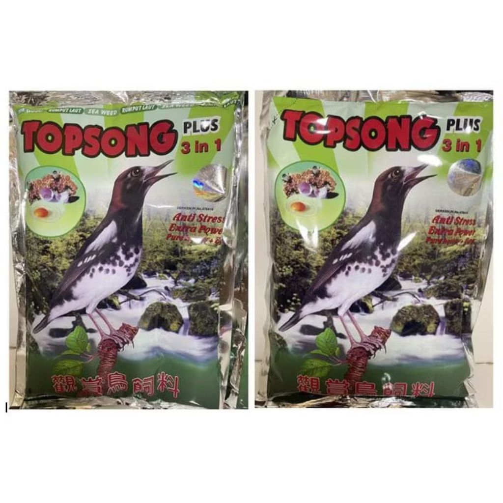 Topsong Plus 3 in 1 Pakan Burung Murai Kacer Jalak Beo Poksay Anis dll