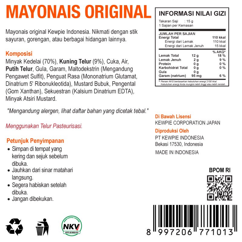 KEWPIE MAYONAIS MAYO ORIGINAL Tube 150g