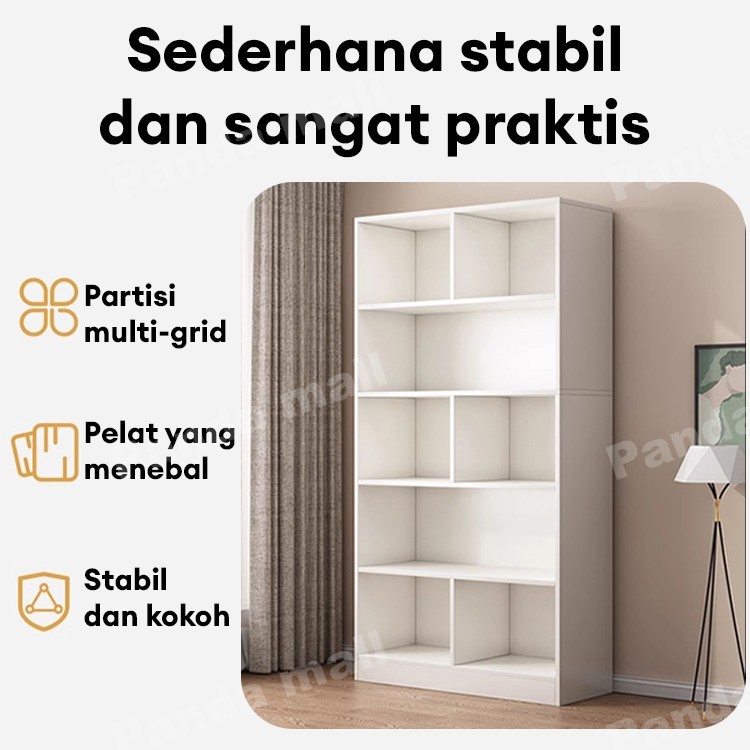 Lemari Buku Kayu Rak Buku Minimalis Rak Pajangan Lemari Rak Serbaguna 4 Kompartemen Rak Buku