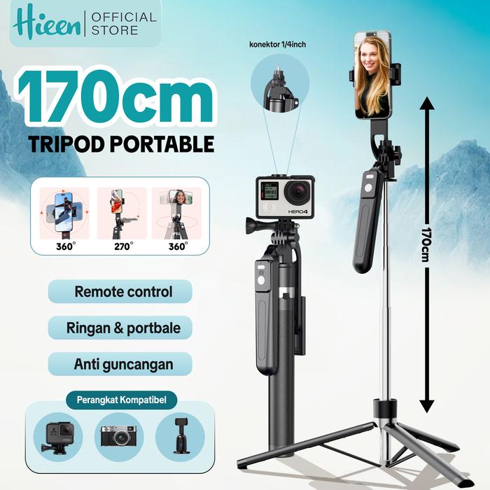 Hieen Tripod Tr13S Multifungsi Remote Bluetooth Tongkat Selfie Multifungsi Braket 1/4 Gopro Camera Lightning - Tr13S 1.7