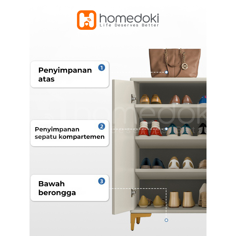 Homedoki Rak Sepatu Lemari Sepatu Kayu Lemari Kabinet Kayu Minimalis Rak Sepatu Putih Shoes Cabinet