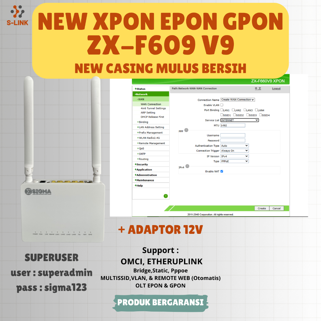 XPON EPON-GPON ZX-F609 V9 DENGAN ADAPTOR