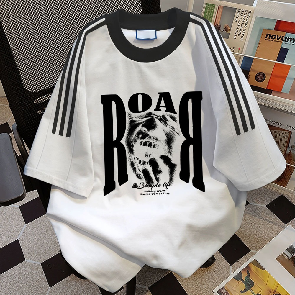 Roar pencetakan Gaya hip hop Amerika Kaos Pria Dicetak Tiga Garis Kaos Lengan Pendek Pria Lengan Pendek jersey Atasan Putih kaos termurah oversize pria atasan pria
