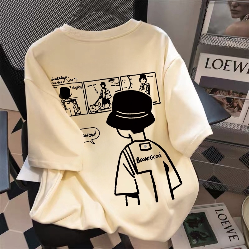AUZY Cetak Kartun Boy | Kaos Cowok Distro Original 100 PERSEN | Kaos Pria Premium Tebal | Kaos Oversize Vintage Pria Street | Baju Pria Cream 9.03