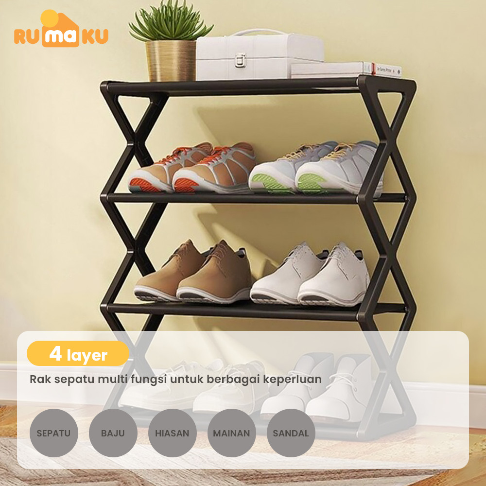 Rak Sepatu Portable 4 Susun Minimalis Stainless Steel Tempat Sepatu dan Sandal Serbaguna