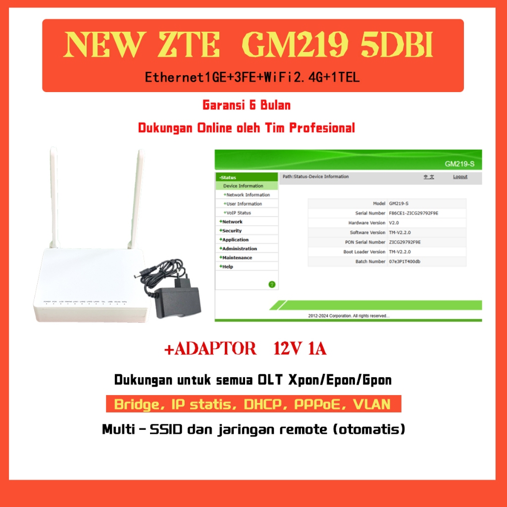 Modem Router Wi-Fi ZTE ONU GM219-S Baru Dengan 4 SSID