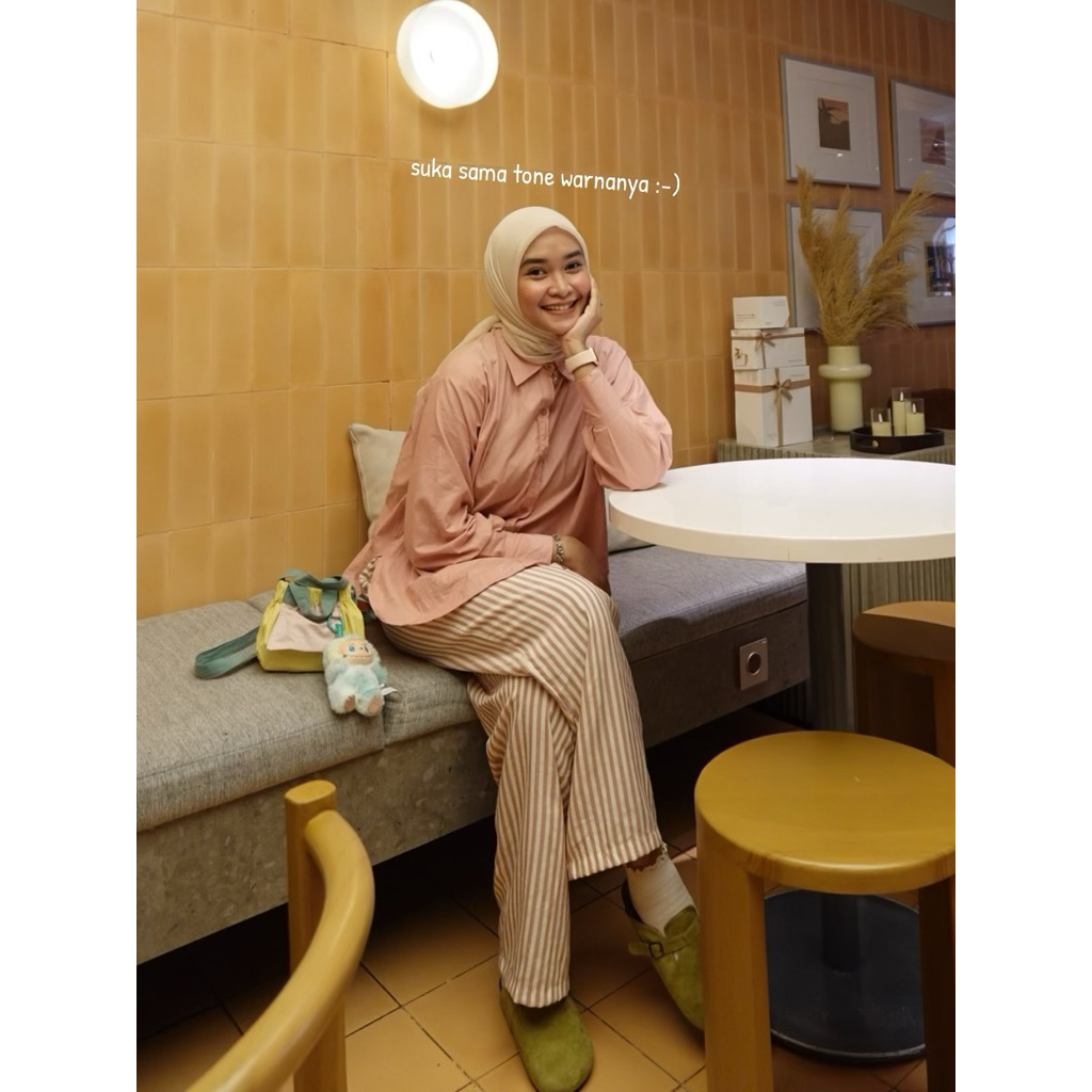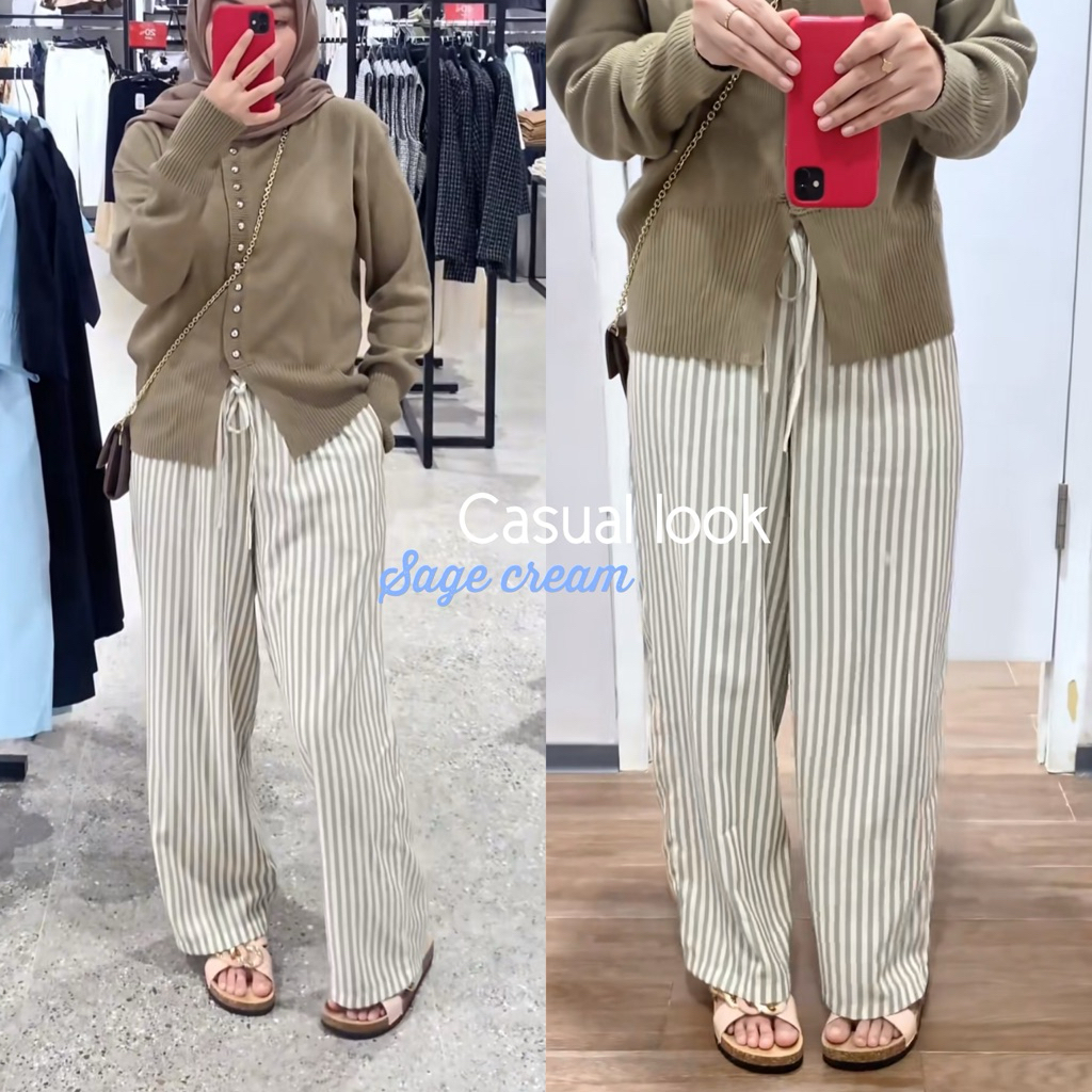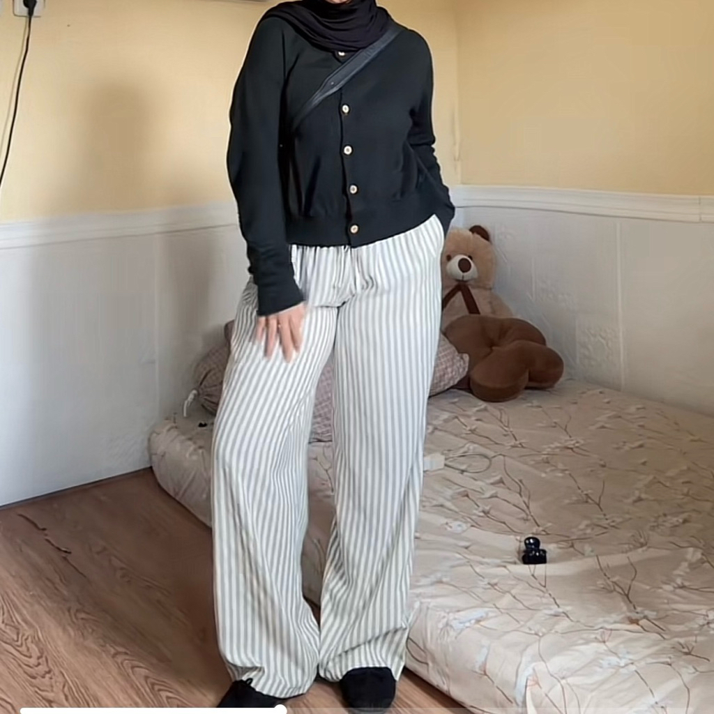 Trippy Pants Celana Wanita Casual Katun Linen Stripes Kulot