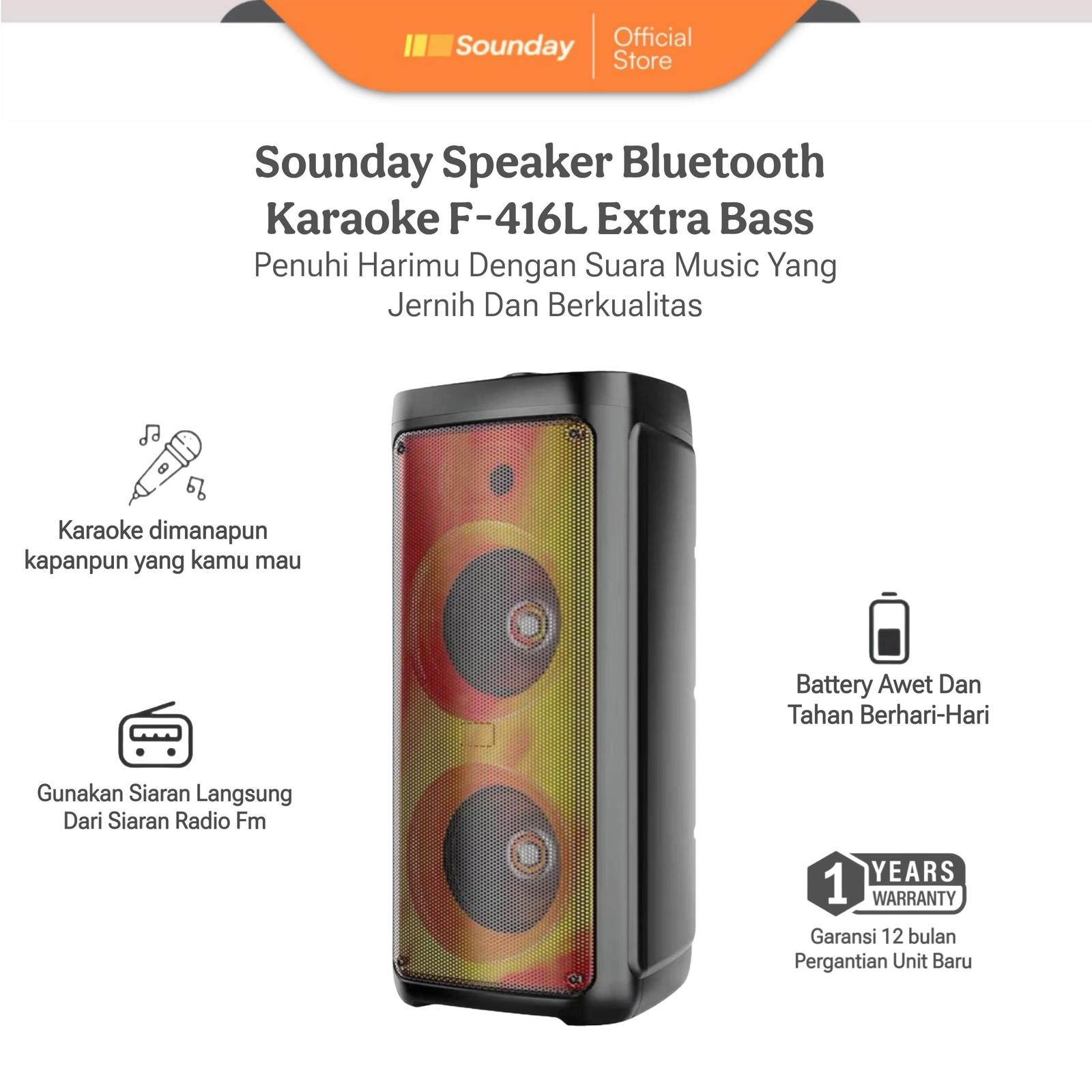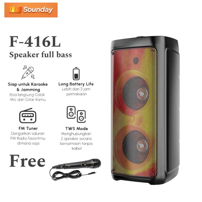 SPEAKER SOUNDAY F-416L FULL BASS GRATIS MIC / SPEAKER BLUETOOTH KARAOKE FLECO GARANSI RESMI