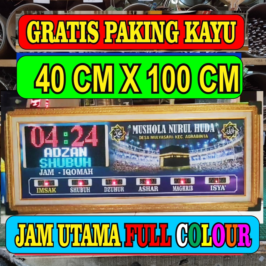 jam sholat digital masjid jam tek full colour 40 cm x 100 cm setting hp android