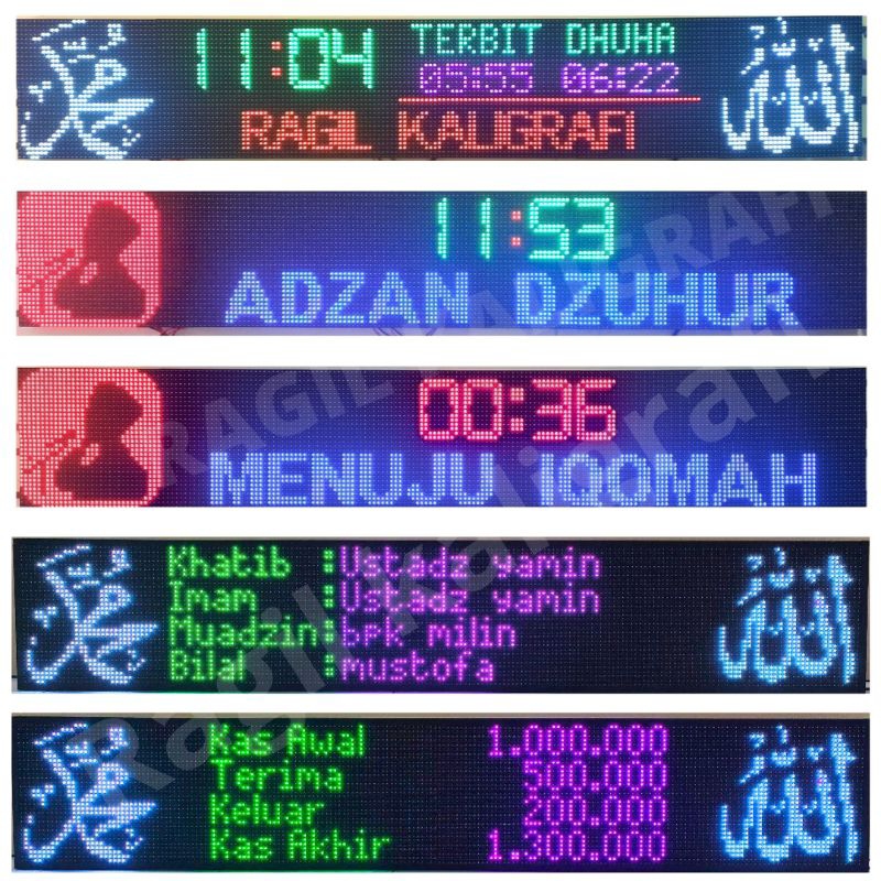 Siap pasang jam jadwal sholat abadi full color P10 rgb uk 200 x 35 cm - jam digital jadwal sholat uk 200 x 35 vm