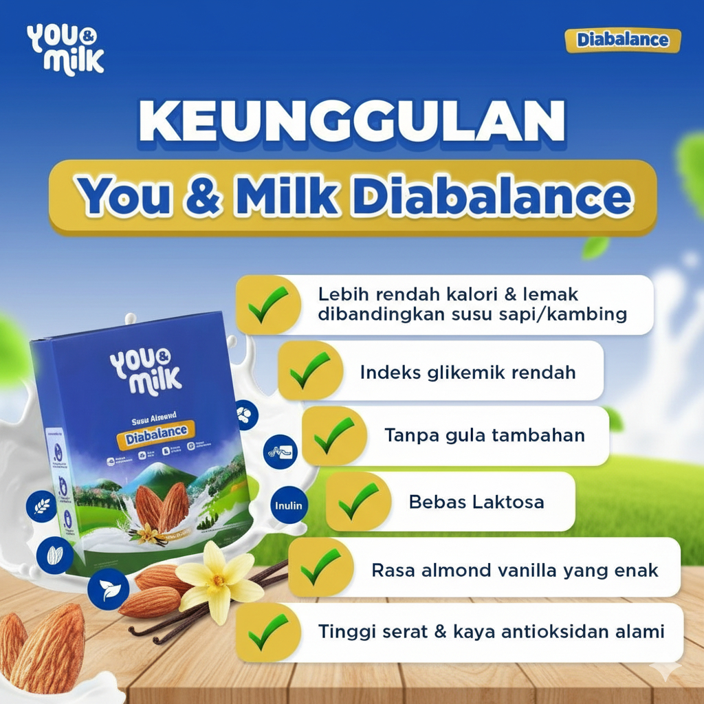 YOU & MILK DIABALANCE PAKET 2 BOX Susu Almond Herbal Bebas Diabetes Menjaga Kestabilan Gula Darah Kesehatan Jantung dan Atasi Kesemutan