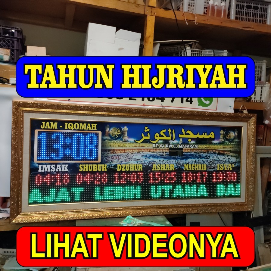 jam sholat digital masjid waktu adzan p10 rgb 7 warna full colour 60 cm x 140 cm