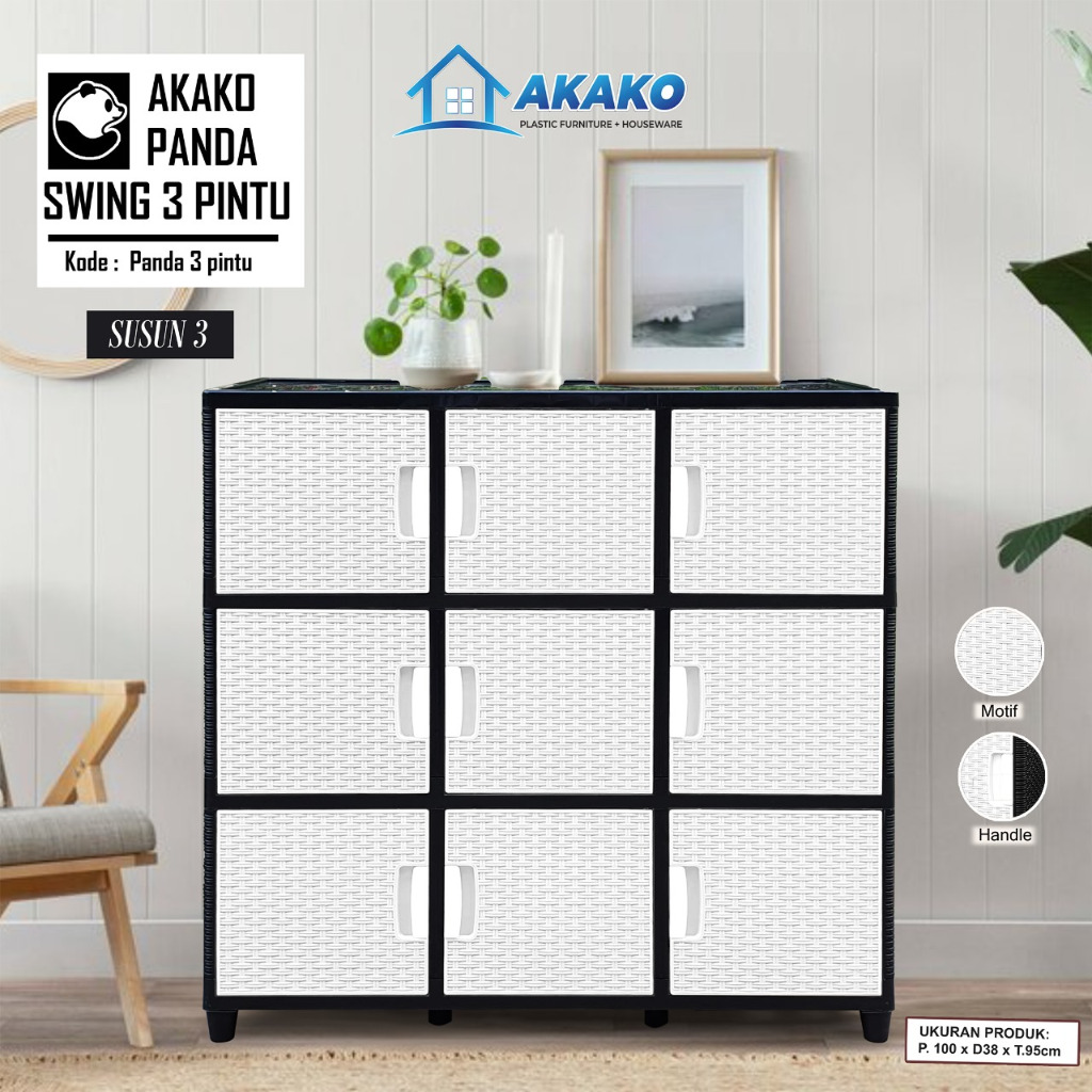 Lemari Plastik Akako CATUR 3 PINTU AKAKO PANDA PINTU SWING Meja TV Buffet Rak Pajangan