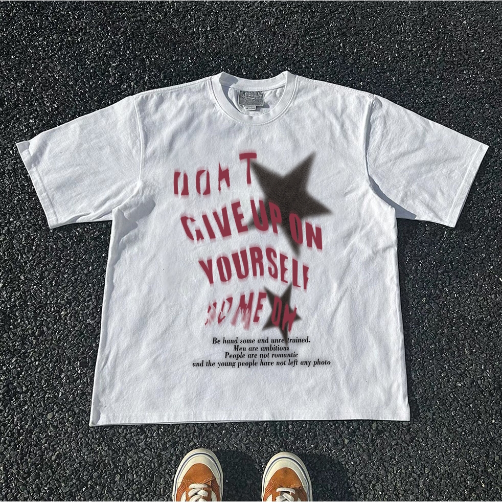 BOOMBAP STREET Style T-shirt Oversize Pentagr Letter | Kaos Wanita Cream | Kaos pria dan wanita |100 PERSEN combed cotton kaos |American retro style star letter women's cotton top