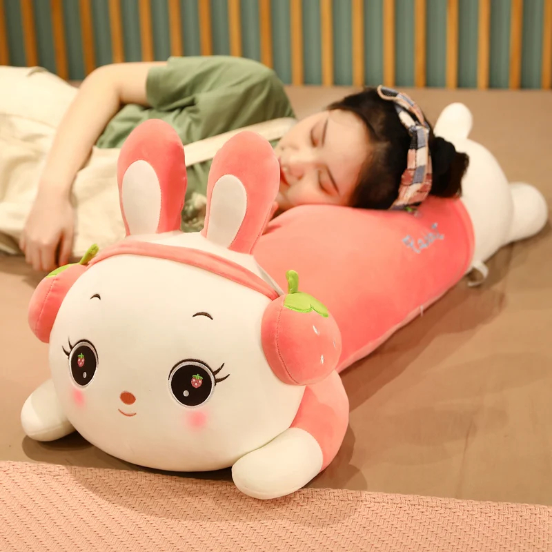 Boneka Bantal Guling Panjang Jumbo Karakter Hewan Kelinci Rabbit Bunny Pakai Headset 50-90cm