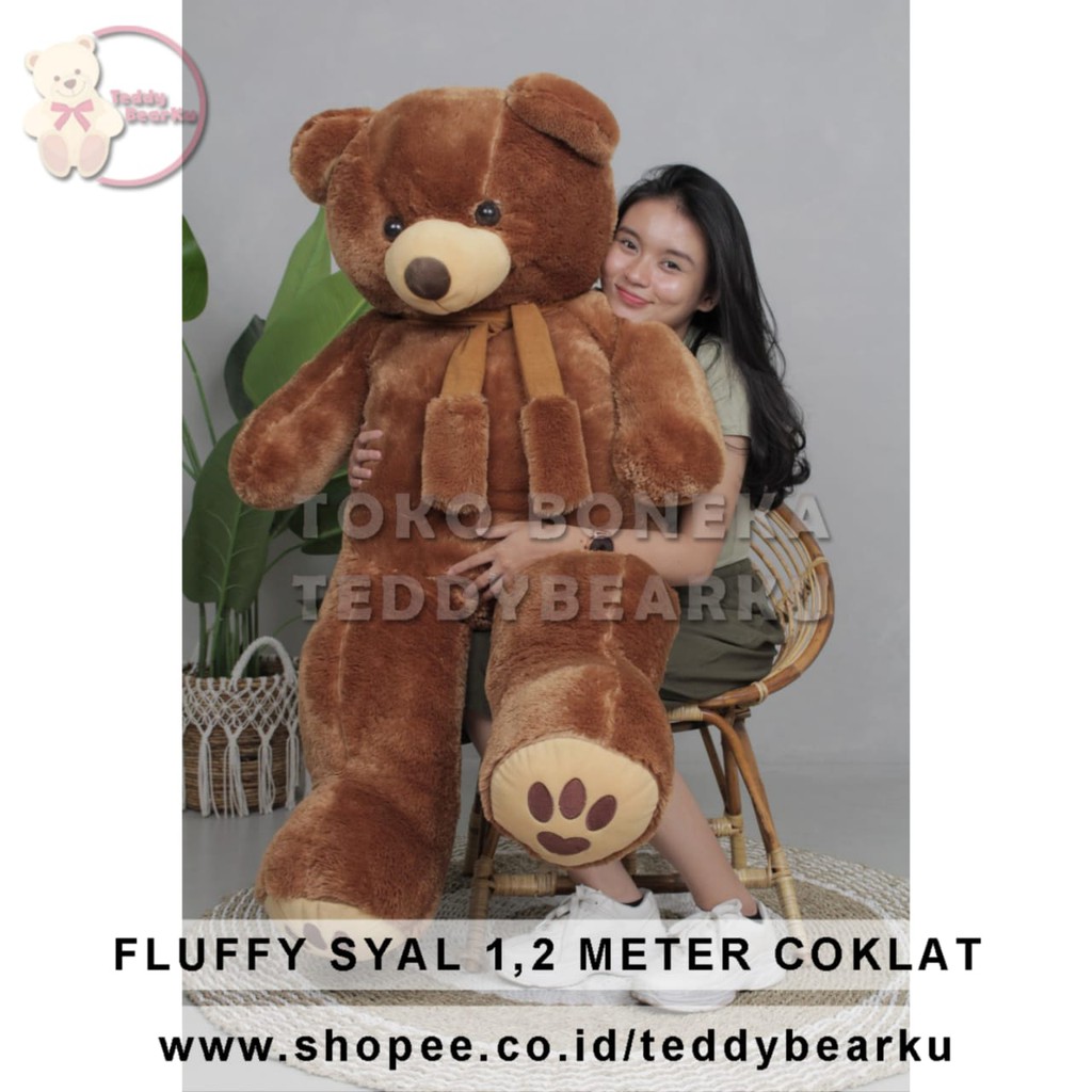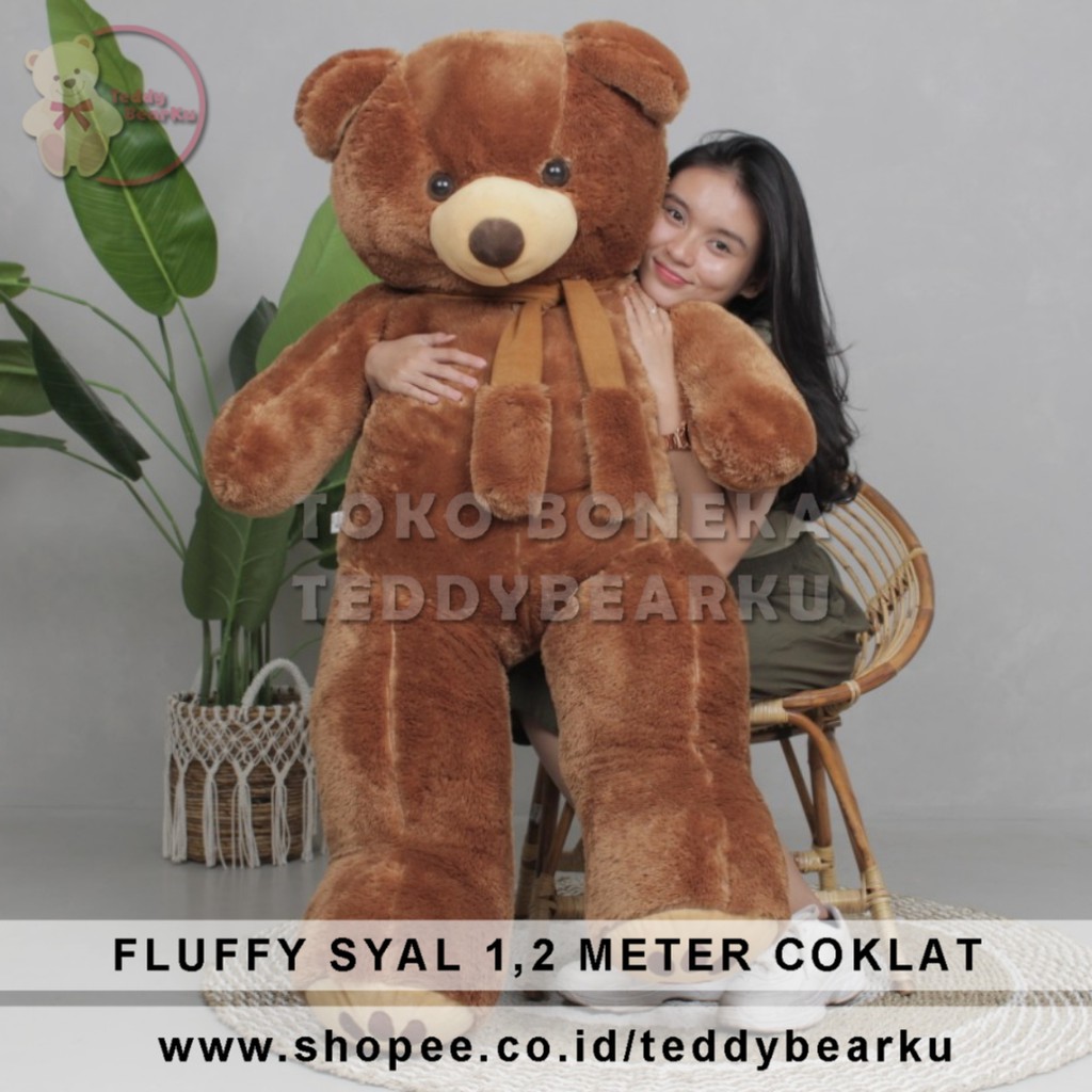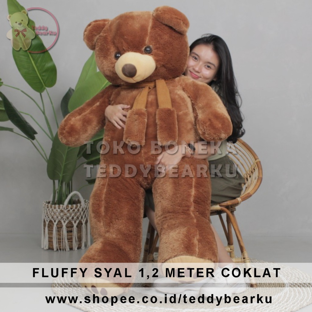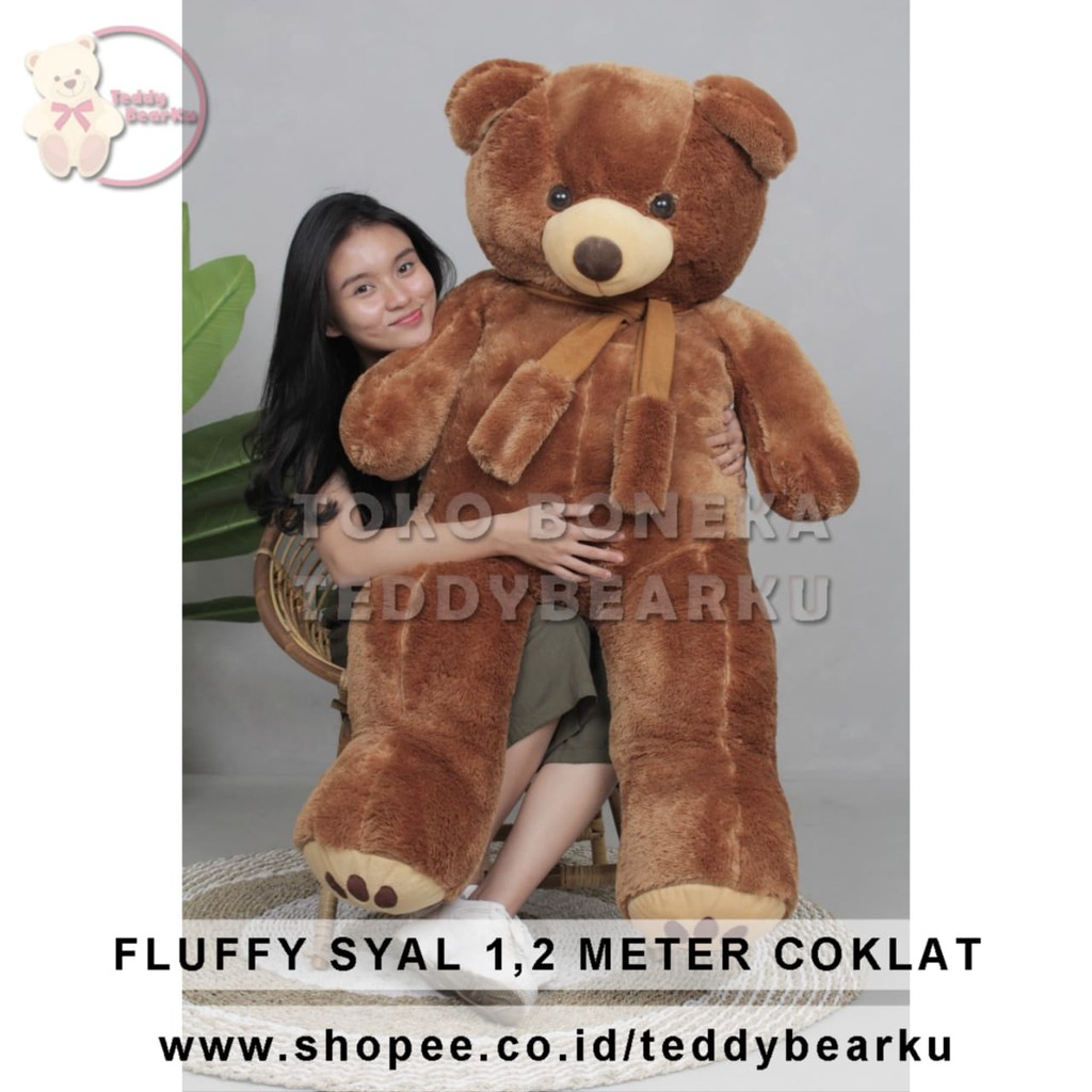 Boneka Teddy Bear FLUFFY SYAL SUPER SUPER JUMBO 1.2 METER WARNA COKLAT